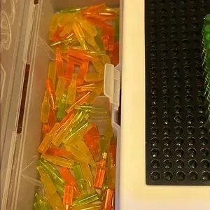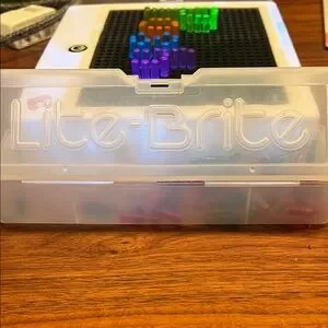 Engage your child's creativity with this vibrant light peg board. Featuring a variety of colors including green, orange, blue, and purple, this toy offers endless fun and learning opportunities. Perfect for imaginative play and developing fine motor skills.