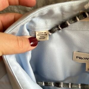Pronto Uomo long sleeve baby blue button down shirt size 17 1/2 (34/35)