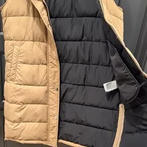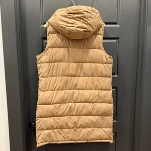 Sleeveless long Hooded Puffer Vest - Camel size L