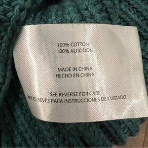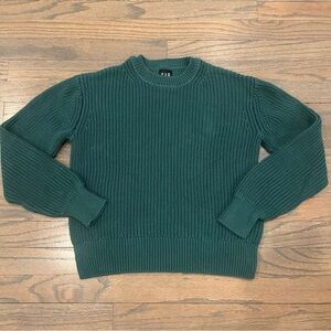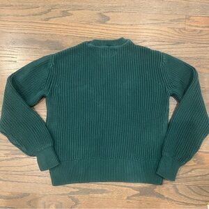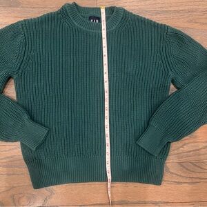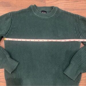 100% cotton and the sweater Quince models its cotton sweaters off of. Forest green chunky knit Gap sweater. Pullover style. Crewneck. Ribbed neckline and sleeve cuffs. Perfect for spring.