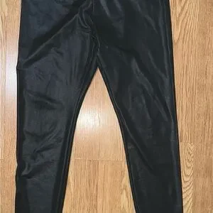Sleek faux leather-look leggings by Target. Smooth, shiny finish for a modern look. Elastic waistband for comfort. Versatile piece for day or night styling.