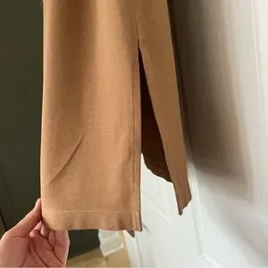 Nine West pull-on pencil skirt in warm camel brown. Soft stretch knit with clean minimalist silhouette and side slit for