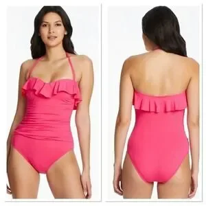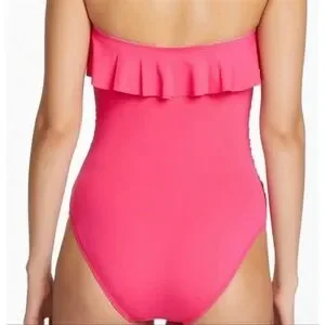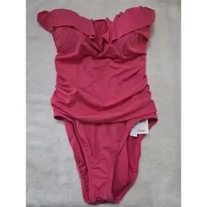 NWT Bleu Rod Beattie 6 Shirred Ruffle Bandeau Mio 1PC Swimsuit Pink 128203