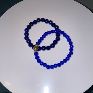 Striking cobalt blue round beads on an easy stretch cord. Smooth polished finish with a rich, glossy look. Simple and bold accent for layered or solo wear.