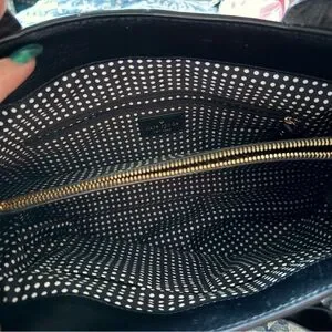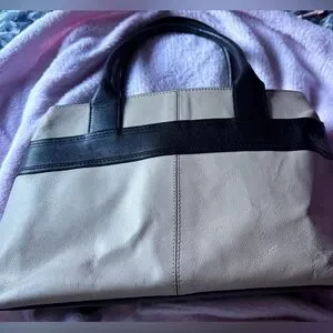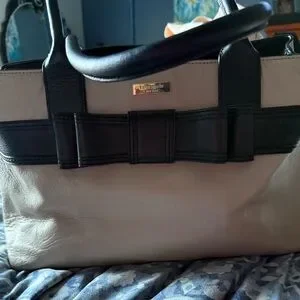 Chic satchel with a bow accent. Black handles and trim. Roomy interior for daily use.