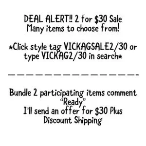 DEAL ALERT! Check out this awesome SALE! BUNDLE THIS ITEM WITH ANOTHER 2/$30 ITEM IN MY CLOSET, COMMENT "READY" AND I'LL SEND $30 OFFER WITH DISCOUNTED SHIPPING! There are many of participating items to choose from. To find these items, type VickaGSALE230 in the search bar on Poshmark or click the VickaGSALE230 style tag on this listing!