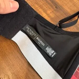 Victoria's Secret X BALMAIN Fashion Show Plaid Strappy Long Line Bra Size 34C