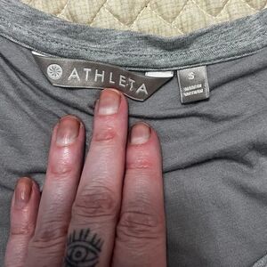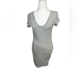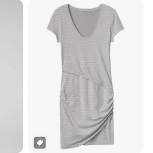 Athleta Knee Length Casual Striped Dresses small gray and white stripe midi