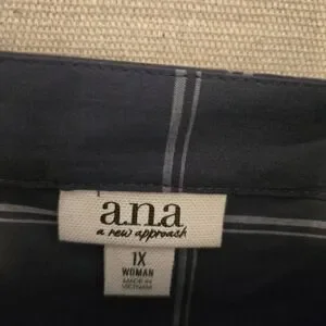 a.n.a Gray Windowpane Checkered Blouse W 3/4 Sleeves