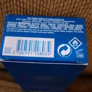 Atelier Cologne Rose Anonyme perfume with a sleek black cap and elegant blue packaging.