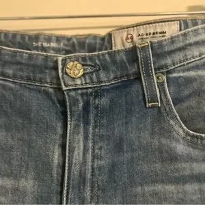 AG Adriano Goldschmied Light Blue High-Rise Cropped Jeans with Knee Rips