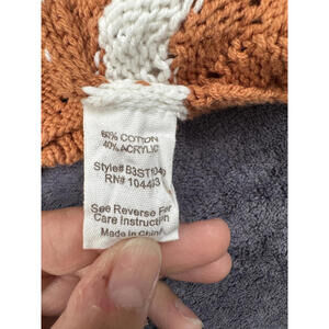Crochet Knit Tank Top Women’s Large Rust Cream Striped Boho Summer Sweater Tank