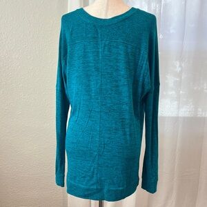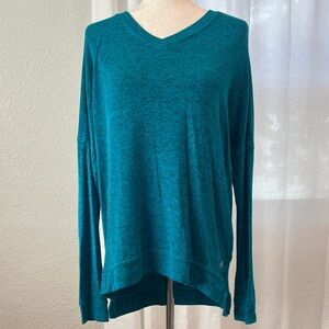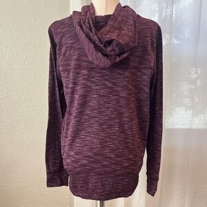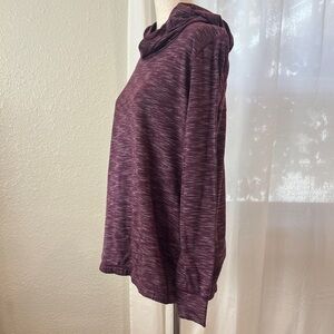 Cozy and stylish long sleeve drytek sweaters by Tek Gear. Perfect for layering or wearing alone. Purple top has a hood and elastic waist. Blue is a V-neck that is longer in the back. Great for cold weather workouts.