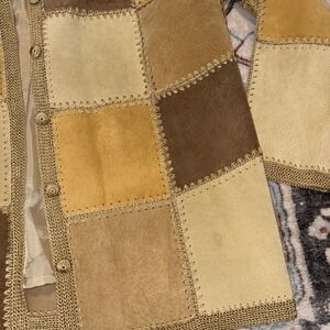 Amazing 100% leather patchwork jacket w/crotched buttons