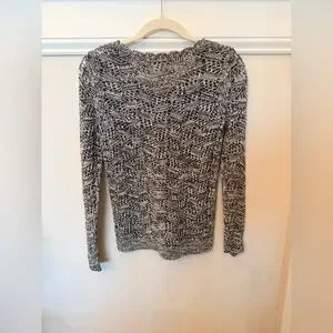 LOFT Black and White Marled Open Knit Sweater