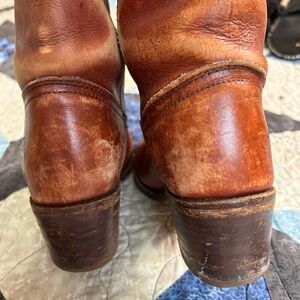 Vintage Frye cognac leather campus boots with a sturdy heel 2 inch heel and 15 inch shaft. Timeless design and lived in look for versatile wear. Sadly they don’t fit me. My loss your gain. Open to offers