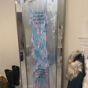 LoveShackFancy Rialto Ruffle Floral Silk-Blend Dress in Cotton Candy Swirl