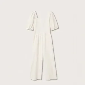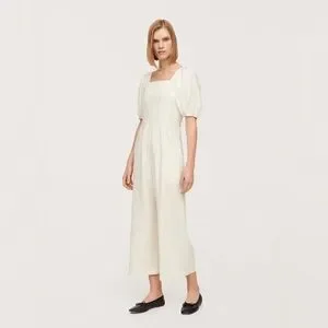 MNG Mango puff sleeve cotton long jumpsuit, cream viscose/cotton/linen blend