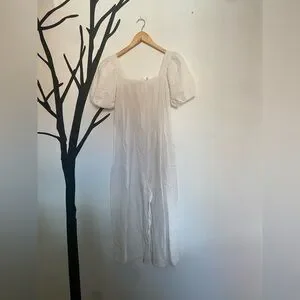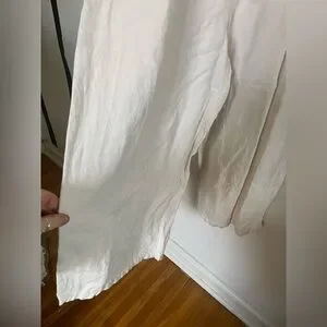 Very gently worn, in perfect condition with zero stains, pulls, pilling or errors in fabric. This carefree jumpsuit has it all: feminine details like puffed sleeves, a ribbed bodice, light elastic on the cuffs, ruched elastic in the back and lightly cropped wide legs… and a linen cotton blend? Come on, how badly do you want to toss this in a bag for your next vacation? You deserve to look as gorgeous as you are when you do 🫶🏻 From a smoke free home 🧡