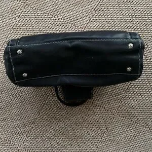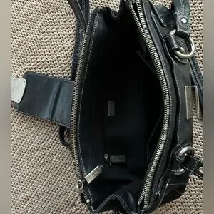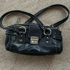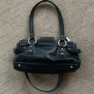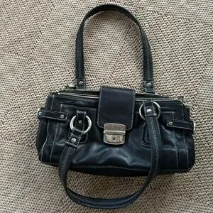 PERLINA Vintage Black Leather Shoulder Bag with Silver Hardware and double zipper closure in Great Condition. This is Not a new bag and should signs of use. However, No rips, tears or holes. Please Examine Photos. All Sales Final