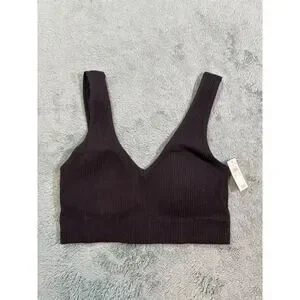 Aerie Superchill Ribbed Crop Tank Black Size L NWT