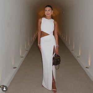 ⚡️spring sale⚡️ Meshki White Cutout Maxi Dress with Thigh Slit XS