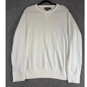 VINTAGE Polo Ralph Lauren Sweatshirt Mens Cream Pony Pullover Crewneck Large