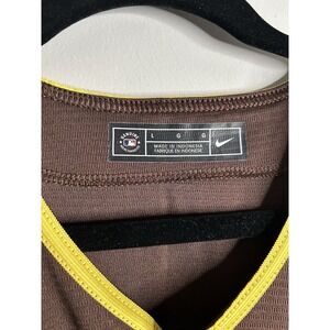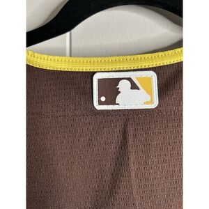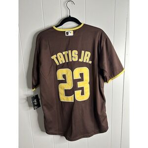 The product is a stitched and sewn Fernando Tatis Jr. Nike San Diego Padres alternate jersey for men in size M. It is officially licensed by Major League Baseball and designed in the team's brown color. This fan apparel is perfect for supporters of the San Diego Padres and fans of baseball in general. Made by Nike, this jersey is of high quality and ideal for wearing during regular season games or as a casual outfit for fans of the team.