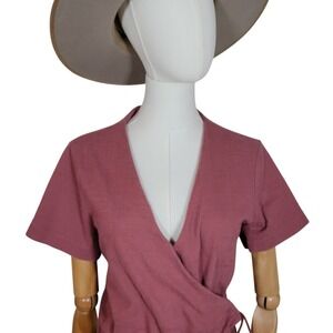 Madewell Texture & Thread Mauve Wrap Jumpsuit Wide Leg Cropped Minimalist Size M