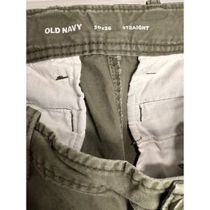 The Old Navy Workwear Canvas Green/Cargo Pants in size 30 with a straight leg fit offer a vintage Y2K style perfect for casual or workwear occasions. These solid green pants feature a zipper closure, flat front, and cargo pockets, making them both practical and stylish. Made from durable canvas fabric, these pants are machine washable for easy care. The classic design and brand accents, such as the button detail, add to the timeless appeal of these versatile cargo pants.