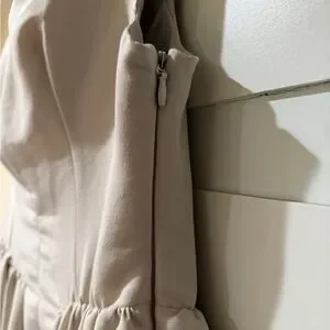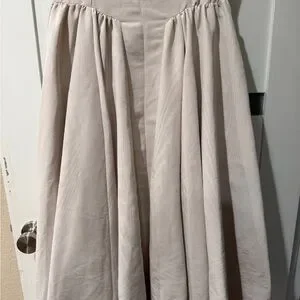 Structured bodice with a flattering waist. Full, gathered midi skirt for movement. Sleeveless design for a clean neckline. Smooth, lightweight fabric with subtle sheen. Perfect for events or refined daytime looks.