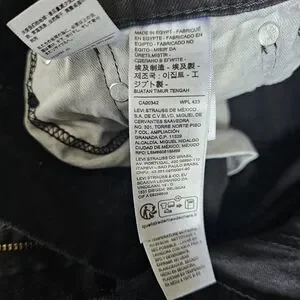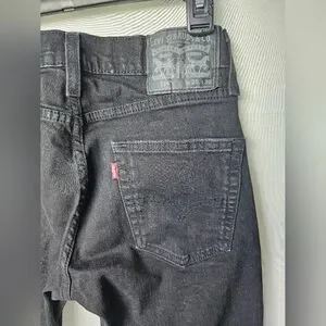 Levi's slim-fit men's jeans in solid black. Subtle tapered leg and raw hem detail. Classic five-pocket styling with button closure. Clean, versatile look for daily wear.