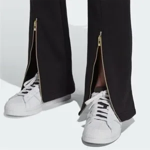 Adidas Originals Women's Track Pants Black Boot cut pant with ankle Gold zip XS
