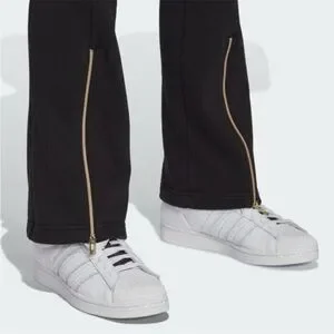 CLASSIC TRACK PANTS WITH A TRANSFORMED LOOK. Track pants are an absolute essential. They reign supreme in the world of comfort, with a touch of sport that adds an edge to any look. These adidas ones take that foundation and build on it, with a little sophistication here and a lot of attitude there. Subtle metallic-gold ankle zips transform the silhouette from tapered to unexpected. Let your shoes share the spotlight or just flash an extra tease of skin. Details Drawcord on elastic waist 70% cotton, 30% recycled polyester French terry Side pockets Front zips on lower legs French terry Colour: Black Product code: HG6647