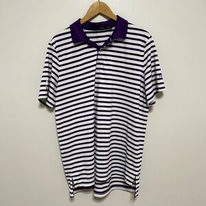 RLX Ralph Lauren Golf Shirt Size Large Purple & White Stripped READ