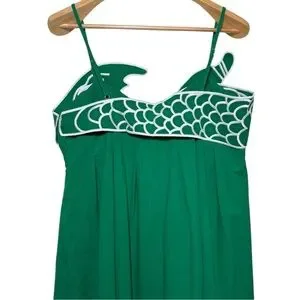 Commense Green Koi Fish Appliqué Midi Dress NWT XL Cotton Farm Rio Inspired