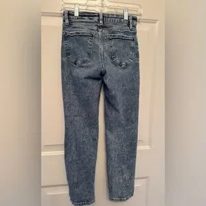 KanCan Signature girls’ mom fit jeans in excellent condition. Classic high-rise mom style with trendy distressed knees and a versatile medium wash. Perfect for everyday wear and easy to style.