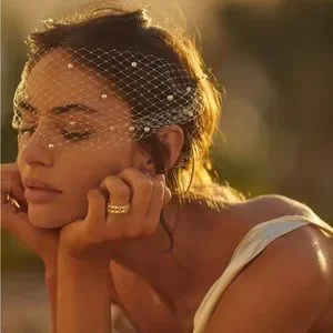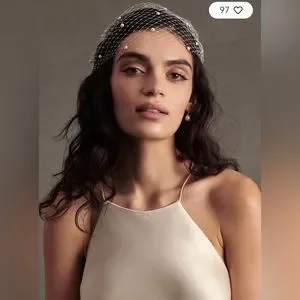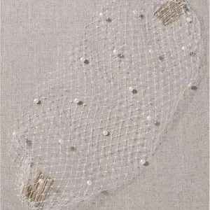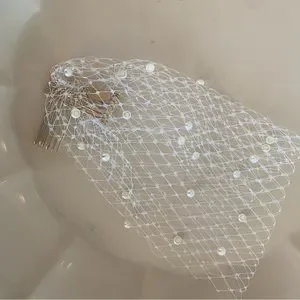 Delicate birdcage veil with scattered pearls. Soft ivory netting for subtle coverage. Easy to pin and style. Elegant finishing for bridal looks.