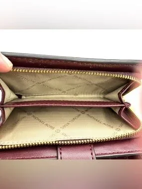 Chic Michael Kors wallet with a two-tone design. Features signature MK pattern. Stylish and functional.