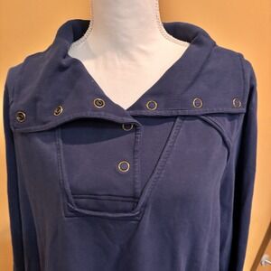 Soft Surroundings Navy Snap Neck Tunic Sweatshirt Top Plus Size 2X Raw Edge