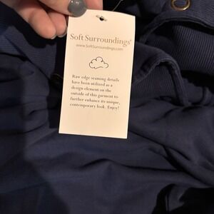 Soft Surroundings Navy Snap Neck Tunic Sweatshirt Top Plus Size 2X Raw Edge NWT