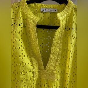 Zara Neon Yellow Eyelet Tunic Top NWT