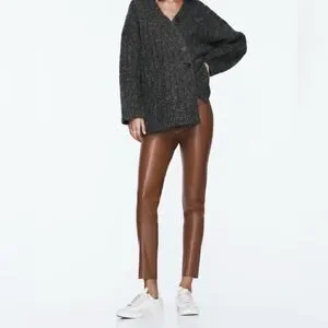 NWT ZARA CAMEL FAUX LEATHER LEGGING PANTS Size L