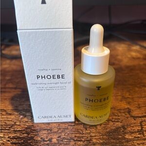Cardea Auset Phoebe: A replenishing facial oil formulated for nightly use. A blend of almond oil, vitamins A and E, beta-carotene from carrot seed oil, rosehip, and jasmine work together to repair and protect skin while you rest.