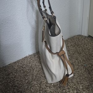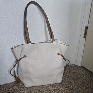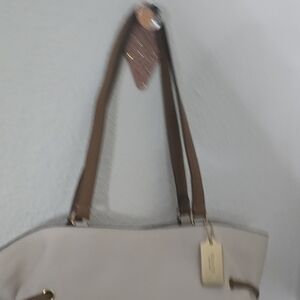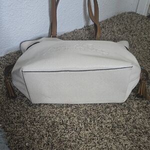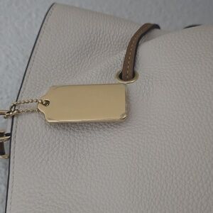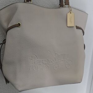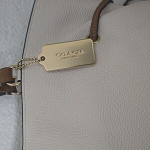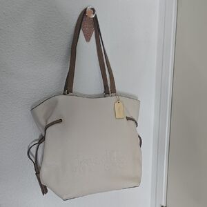 Coach Andy Cream & Brown Embroidery Pebbled Leather Tote (METAL HANGTAG)(EUC)🤎✨️ Excellent condition ! No corner wear, no rips , no pipping exposure, no pipping issues, metal hangtag still has the plastic on it , handles are excellent, exterior & interior is clean & hardware works perfectly fine ! Very Gorgeous 😍 Will ship with care ! Same or next day shipping !
