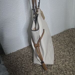 Coach Andy Cream & Brown Embroidery Pebbled Leather Tote (METAL HANGTAG)(EUC)🤎✨
