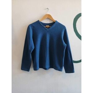 LL Bean V-Neck Fleece Sweater Teal Blue Long Sleeve Pullover Mens Large