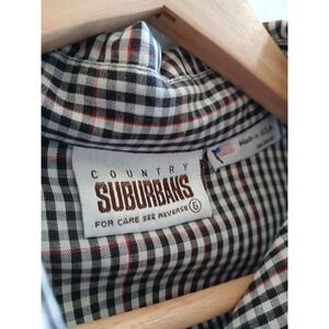 Country Suburbans Vintage Gingham Button Down Shirt Black White Red Made in USA
