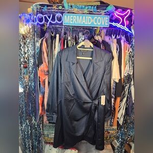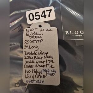 #0547 Sz 22 NWT ELOQUII Dbl Wrap Dress Silky Navy Blue 25.75"ptp 39"Long CHIC!