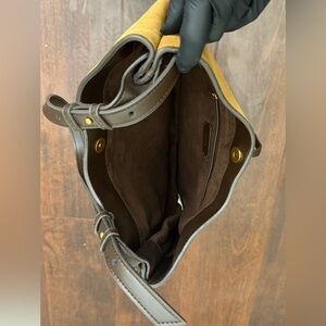 Zara suede bag, equestrian shoulder bag, brown suede handbag, cowhide leather purse, saddle style bag, boho leather bag, suede hobo bag, neutral leather handbag, everyday shoulder bag, trim bag, gold hardware purse, fall suede bag, Ralph-Lauren inspired